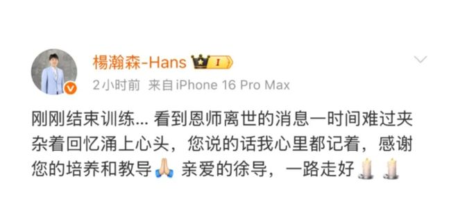 恩师突然去世!只有52岁!杨瀚森发文哀悼!